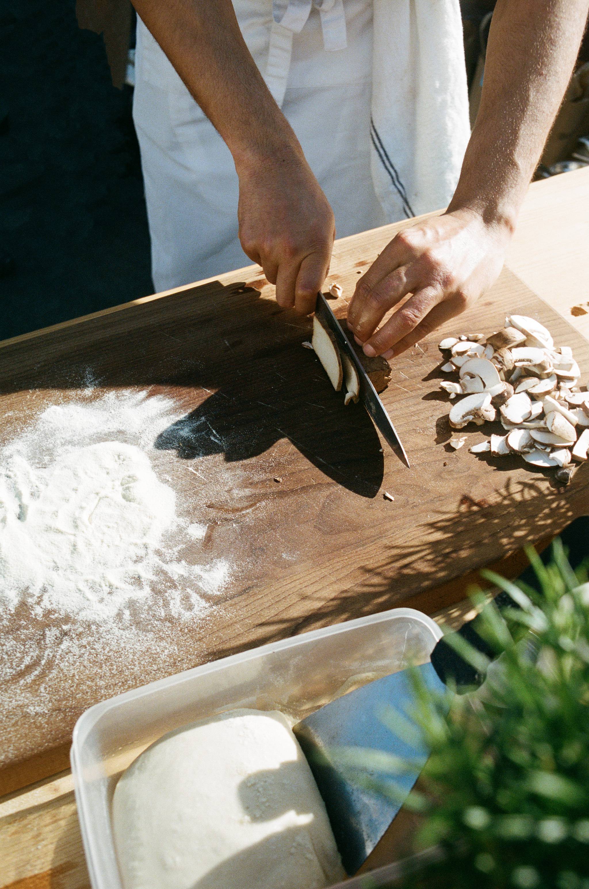Auch beim Pizzabelag plädiert Tom Philips für gute Qualität: “Eine Pizza braucht nicht viel Belag, wenn die Zutaten gut sind.” Gerade Gemüse braucht aber die richtige Vor- und Zubereitung, damit es auch richtig gut schmeckt. “Zucchini und Melanzani würde ich grillen und würzen, bevor ich sie auf die Pizza lege. Zwiebeln kann man karamellisieren oder einlegen, damit sie süßer und milder werden. Man kann zum Beispiel auch Süßkartoffelwürfel im Ofen vorbacken, bevor sie auf die Pizza gelegt werden”, empfiehlt Tom.