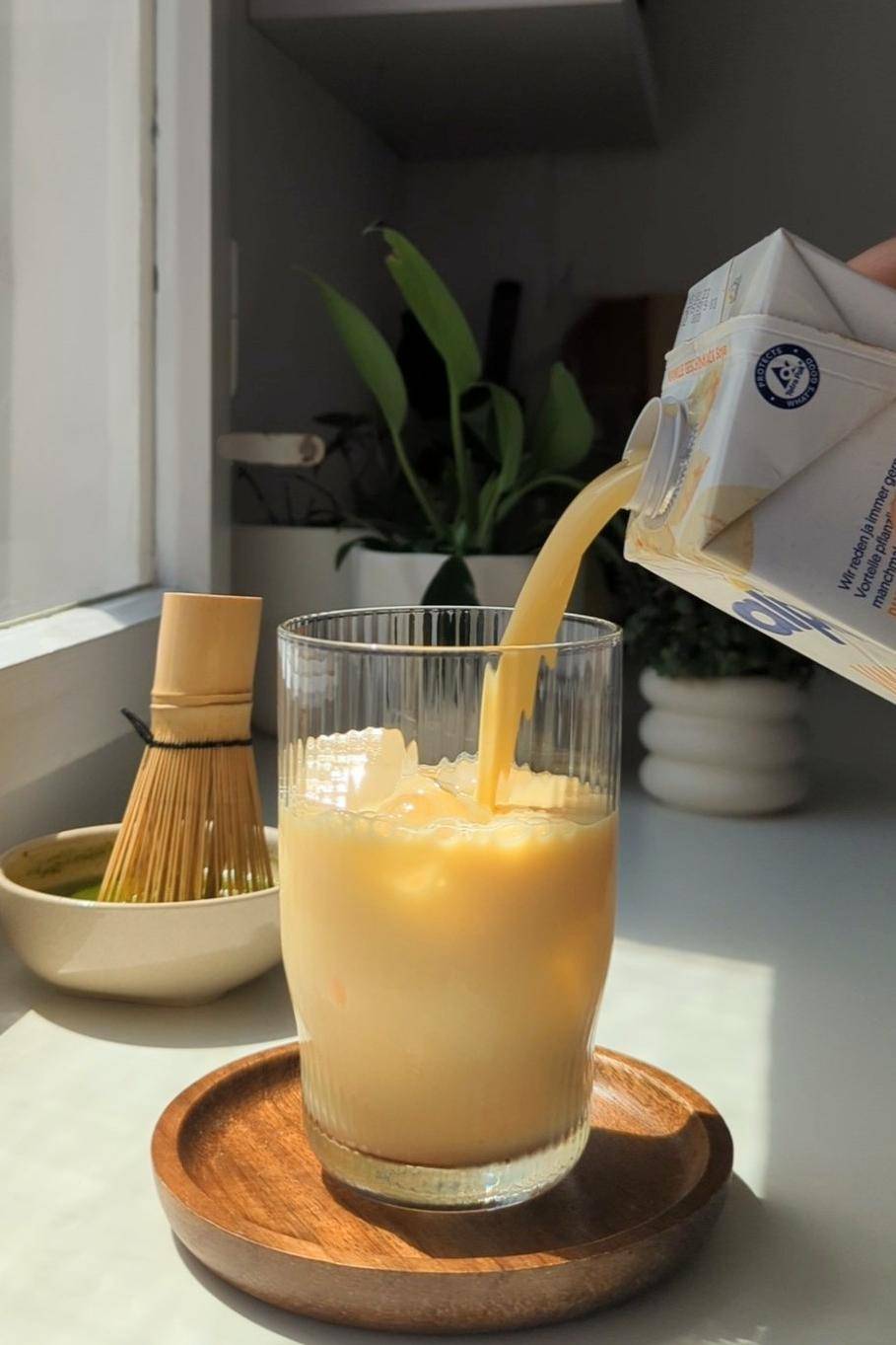 Dieses Getränk ist perfekt für Matcha-Liebhaber, die eine Abkühlung brauchen. Es schmeckt nicht nur herb und frisch nach Grüntee, sondern ist auch unfassbar cremig durch den Sojadrink und das Vanilleeis. Wer Vanille besonders gern hat, kann Sojadrink mit Vanille-Geschmack verwenden.